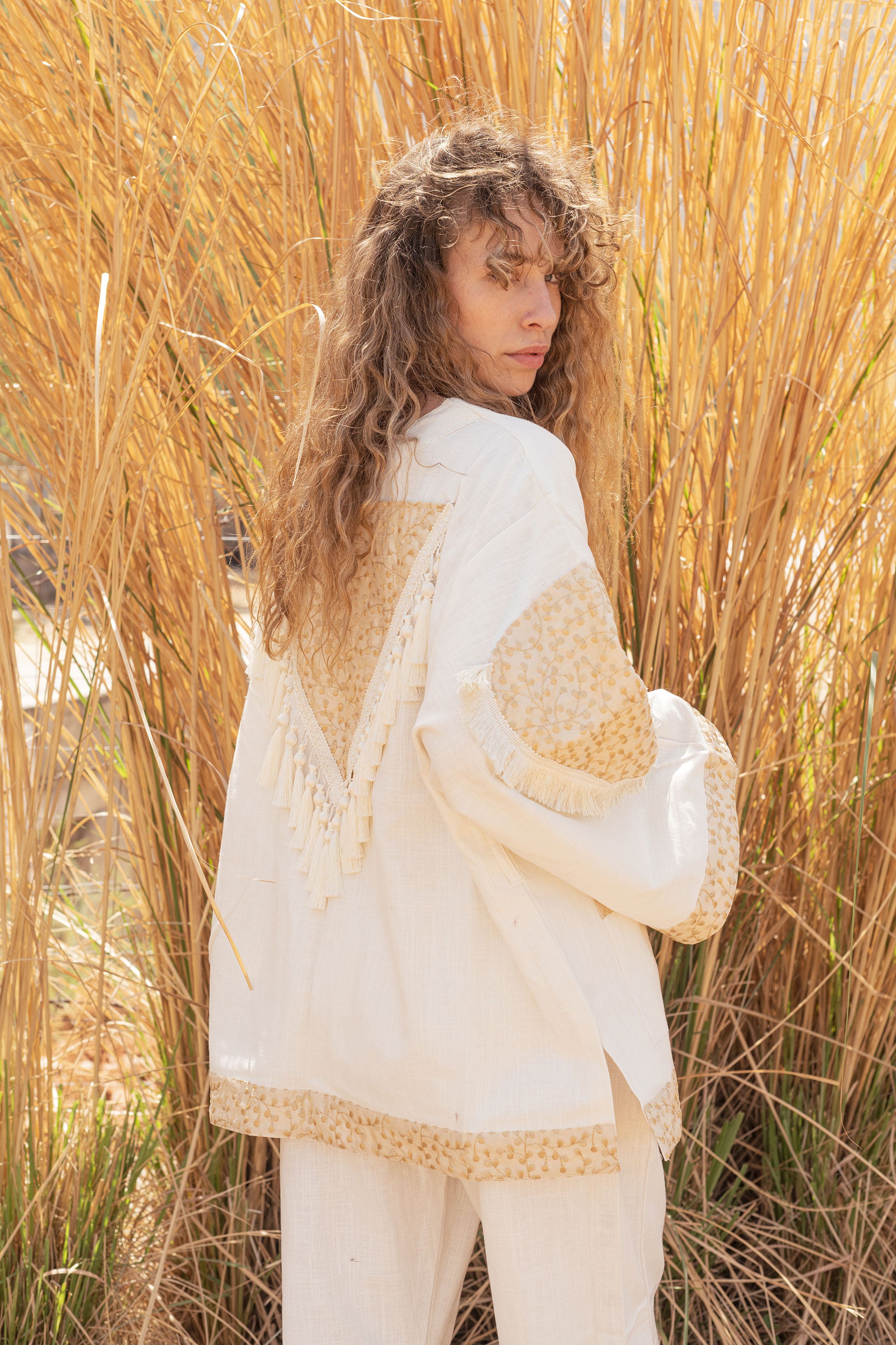 Kimono con Mangas y Cuello Cruzado Bajo.
