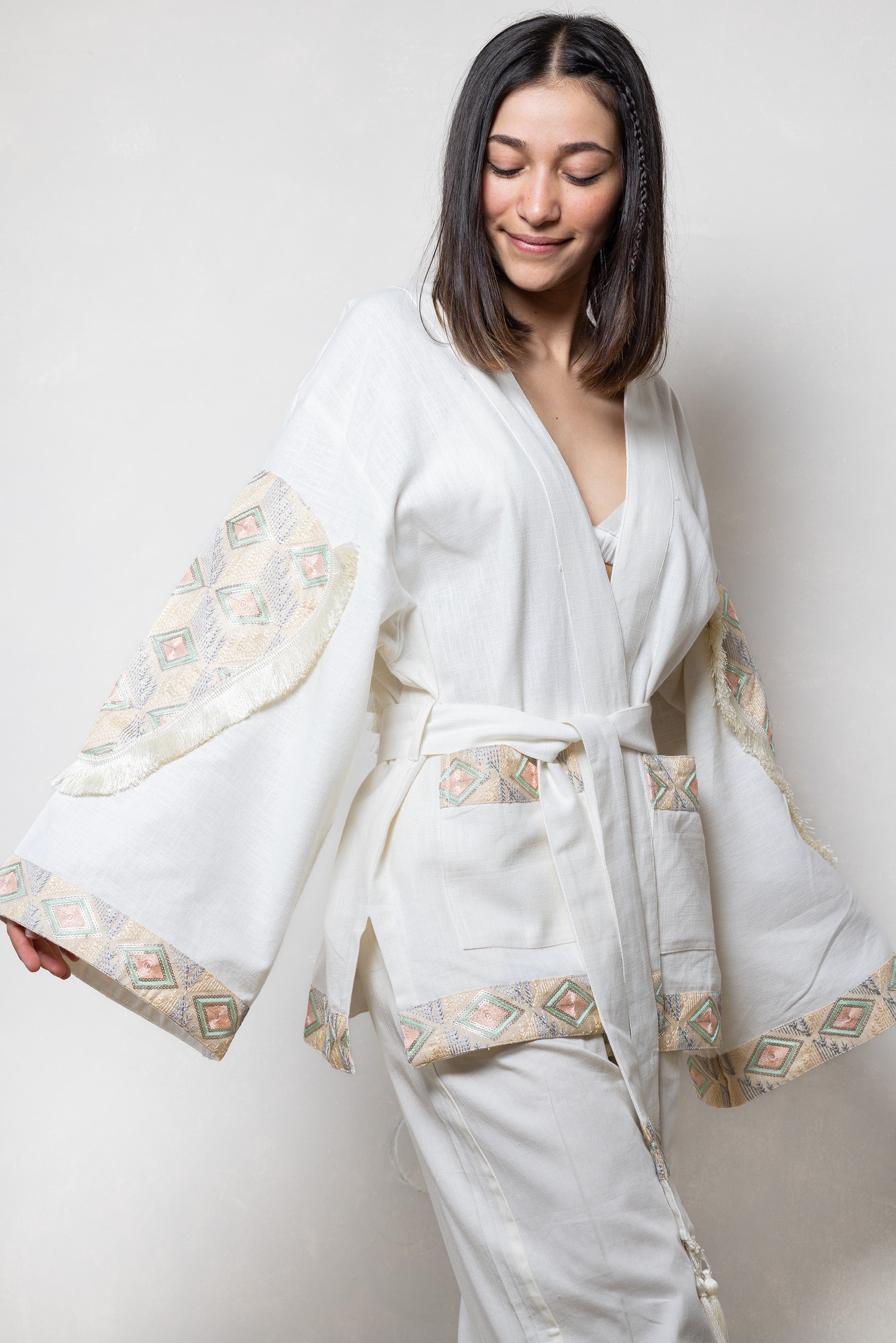 Kimono con Mangas y Cuello Cruzado Bajo. Fabricada en algodón 100% natural.