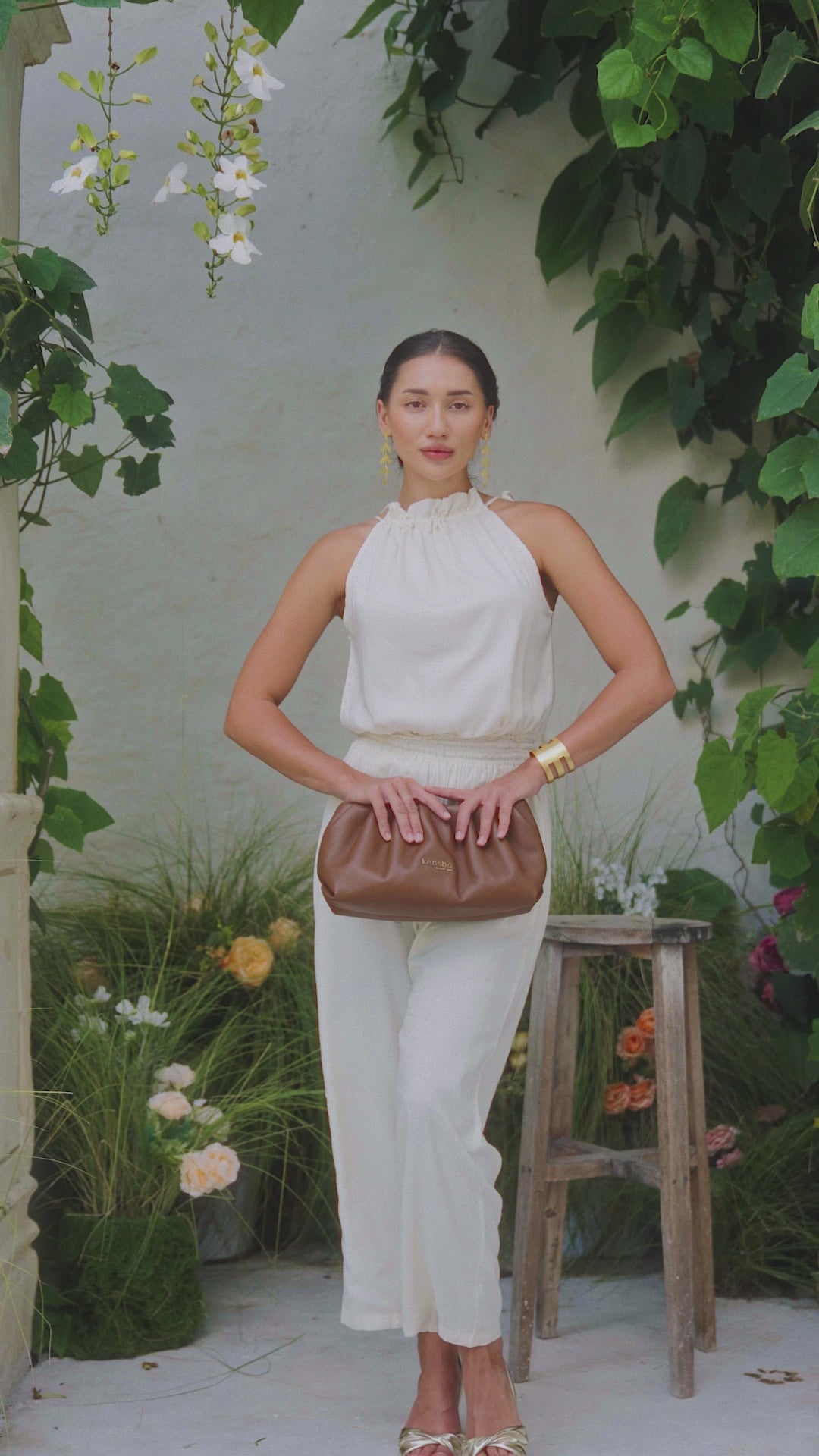 Presentamos el versátil Halter Top, que combina elegancia y comodidad en un diseño sofisticado. Confeccionado en suave y ligero rayón, este top es ideal para cualquier momento del día. Sus dos cintas ajustables permiten transformarlo fácilmente: puedes lucirlo como un seductor top halter con un distinguido cuello fruncido alto, o como una blusa práctica y sofisticada con un escote barco texturizado. Perfecto para transiciones entre eventos diurnos y nocturnos, este top añadirá un toque refinado y moderno a tu estilo.