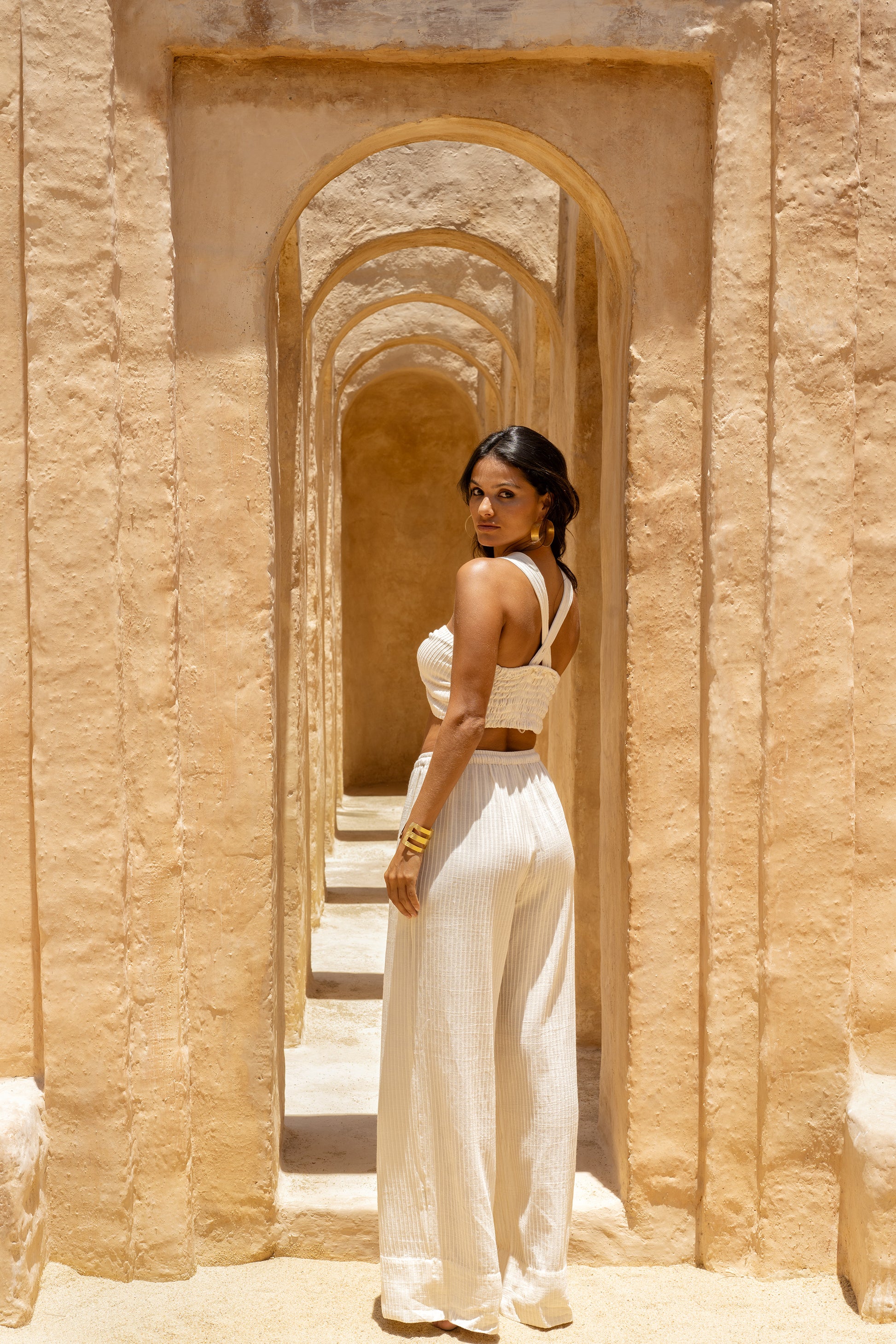 El top Nayara es la pieza esencial que destaca por su diseño único y moderno. Confeccionado en algodón 100% de alta calidad, este top presenta líneas en relieve que aportan un toque distintivo a tu outfit. Su diseño estilo banda incluye goma elástica en la espalda, garantizando una adaptación óptima y máxima comodidad, ajustándose armoniosamente a cualquier tipo de cuerpo. Además, cuenta con un cierre en nudo delantero y tirantes ajustables, lo que permite personalizar el ajuste a tu gusto.