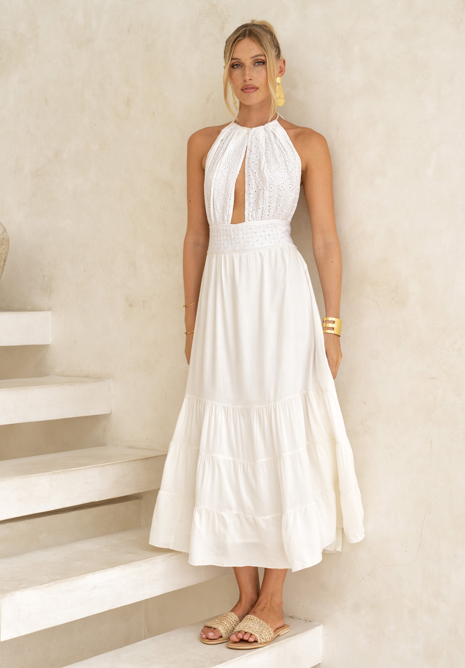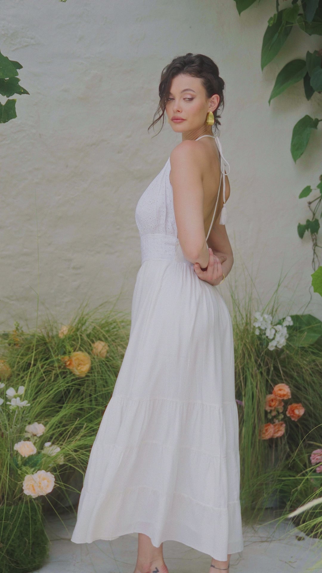 Presentamos el vestido Penelope, un elegante modelo atado al cuello con media espalda descubierta que aporta un toque de sofisticación. Su diseño combina la delicadeza de un algodón bordado en la parte superior con la fluidez del rayón en la parte inferior, convirtiéndolo en una opción perfecta para diversas ocasiones: úsalo con sandalias para un look casual o con tacones para un evento especial. Este vestido es ligero y cómodo, ideal para mantenerte fresca incluso en los días más cálidos.